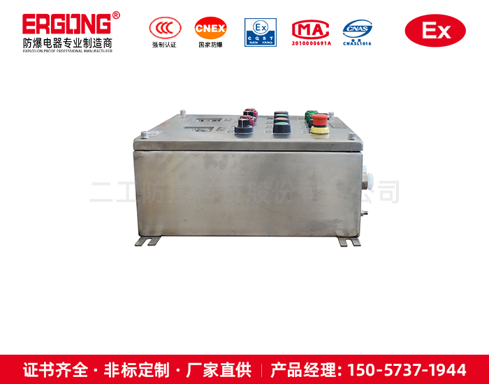 2. 本產品為改進型防爆產品,內部可裝防爆按鈕、防爆指示燈、防爆電流表、防爆開關、防爆電壓表等各種儀表和控制需要的部分;
